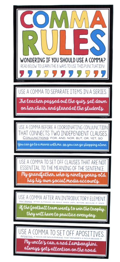Help your students understand the different comma rules with these free eye-catching classroom posters.