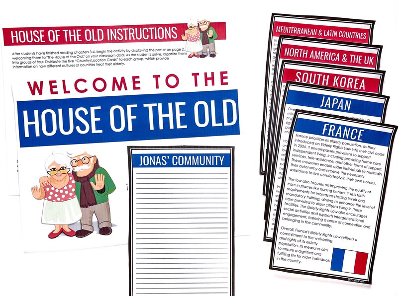 This creative classroom activity allows students to examine how the elderly are treated in different cultures and how that relates to The Giver. In the novel, the elderly are placed in The House of the Old and are eventually released from the community. Students will learn about how the elderly are treated in South Korea, Japan, North America, France, and in Mediterranean and Latin countries. Then, students will compare what they learn to Jonas' community.