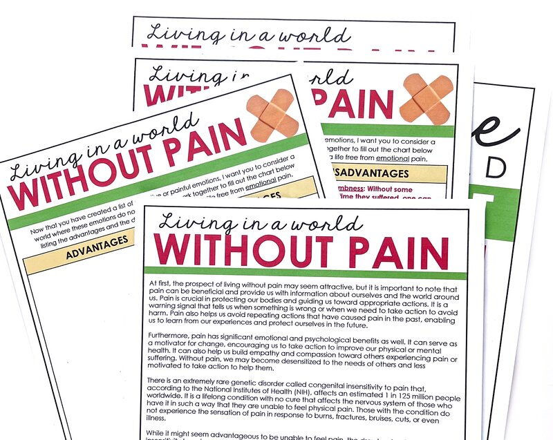 This activity will allow students to examine a world with no pain as the community members experience in The Giver. Allow your students to make a real-world connection to the novel by reading and watching a video about a condition where people feel absolutely no pain. This activity is sure to engage your students in thoughtful discussion about the importance that pain plays in our lives.