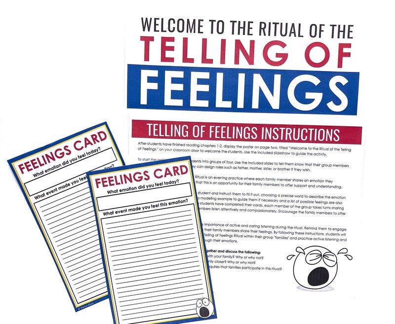 In the novel, families are required to participate in a ritual called The Telling of Feelings. During the ceremony, each person describes an emotion they experienced during the day and discusses it with the family. Allow your students to step into The Giver by assigning them a family within the classroom and having them participate in a simulation of The Telling of Feelings ritual.