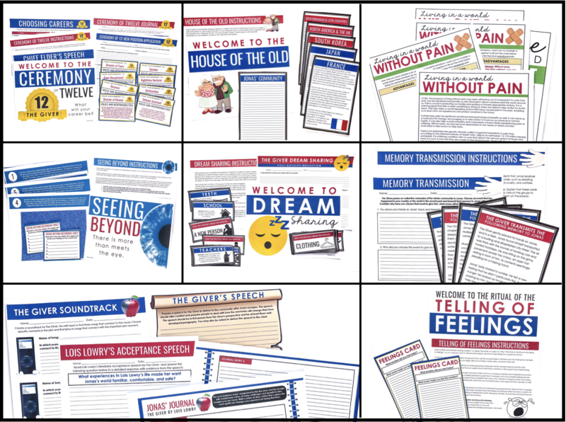 13 Ready-to-use, interactive activities or assignments to bring your unit for The Giver to life. Students will absolutely love these activities and they will allow them to think deeper about story elements, make deeper connections with their own life and the world around them, and get up and moving within the classroom.