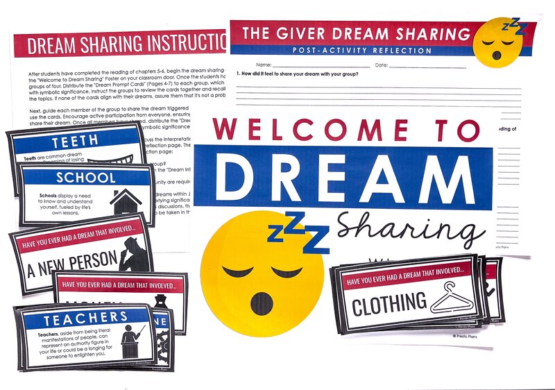 In the novel, the members of Jonas' community must share their dreams in a daily dream sharing family ritual. This activity allows students to simulate this ritual in the classroom by forming a family group and sharing one dream they have felt lately based on prompting cards with common dream elements. Then, they will have the chance to interpret their dreams.