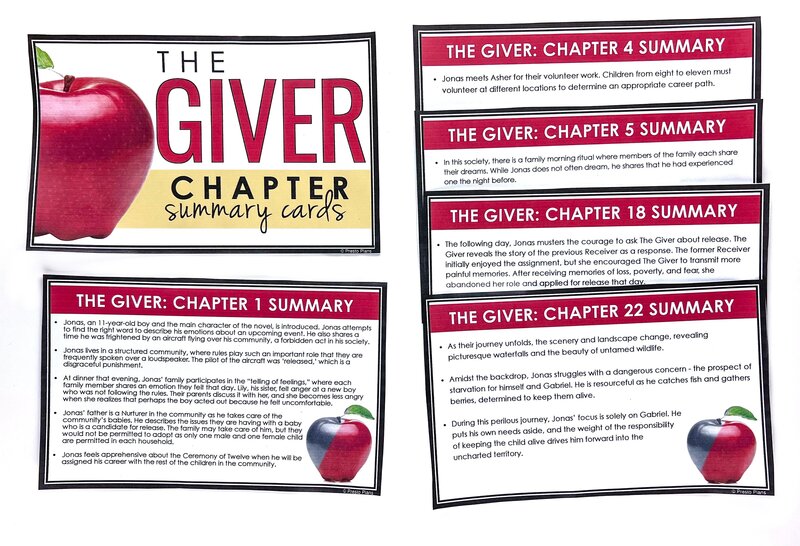 These 23 summary cards (one for each chapter of the novel) outline the most important elements of the plot. Simply print and cut, and you have a resource available that can be used by any student in the class.